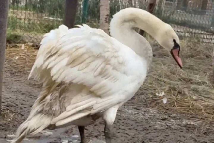 Застрявшая перелетная птица оказалась лебедем-шипуном, не успевшим мигрировать в теплые края. Пернатого гостя доставили в Новый Уренгой на вертолете и поселили в персональный вольер Детской экологической станции.