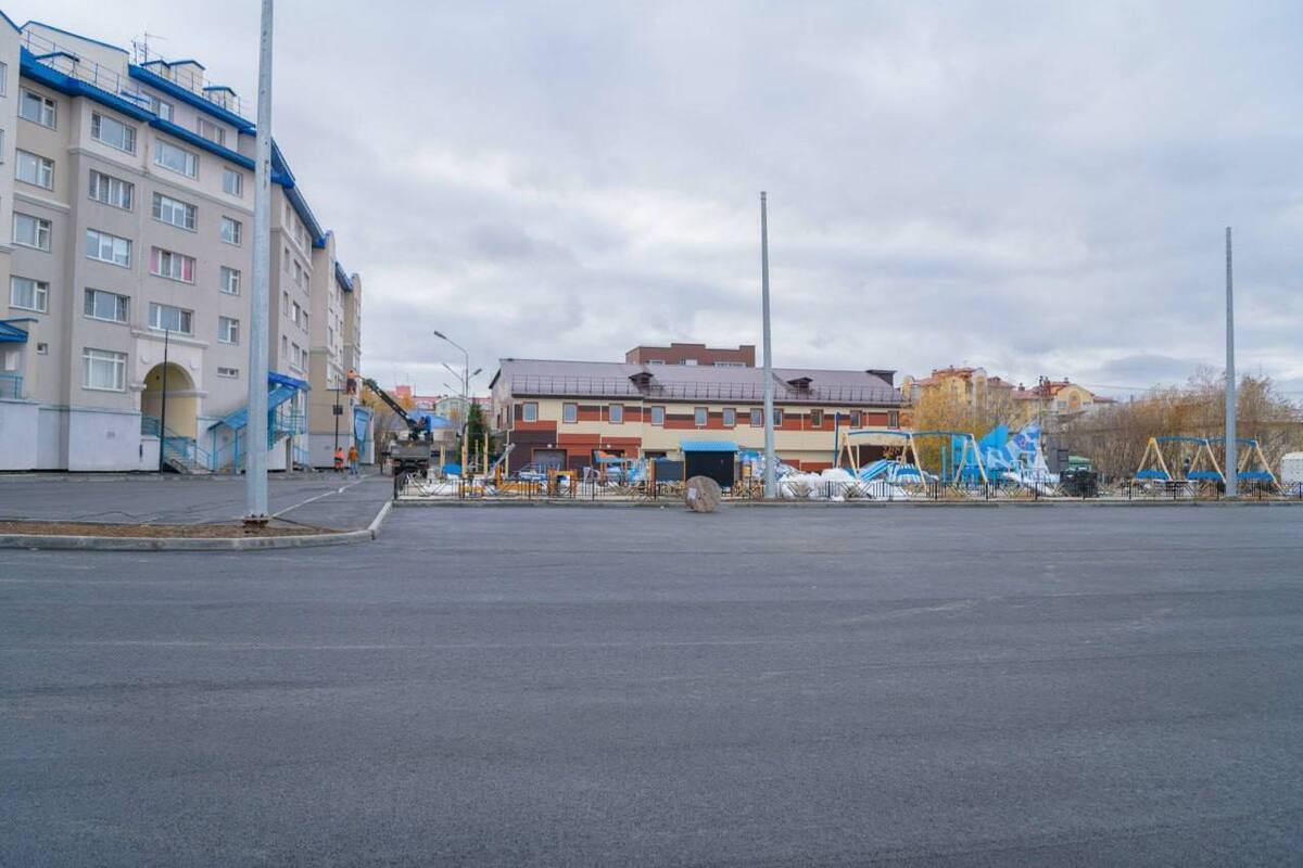 Подрядчик уже приступил к созданию современной детской площадки. Проезды заасфальтированы, на месте снесенного общежития появилась большая парковка.