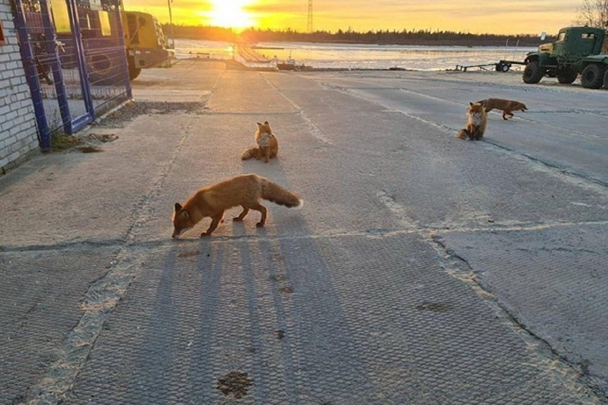 На одном из месторождений Ямала была замечена сразу группа лисиц. Об этом 26 октября рассказали в паблике «Подслушано № 1 Лабытнанги — Харп» во «ВКонтакте».