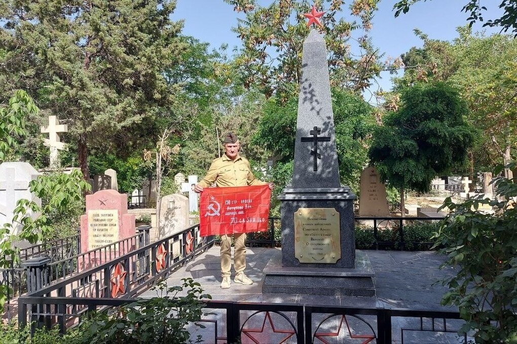 В тени деревьев было прохладно и, немного отдохнув, мы попросили у смотрителя ведро с водой, щетки, ветошь и привели в порядок памятник советским солдатам и окружающий его невысокий забор. В целом нужно отметить, что этот памятник, благодаря вниманию сотрудников российского посольства в Тегеране, прихожан местного Храма Николая Чудотворца и смотрителя кладбища находится в достойном состоянии, но нам очень хотелось таким образом отдать дань памяти советским солдатам, честно исполнившим свой долг вдали от Родины.