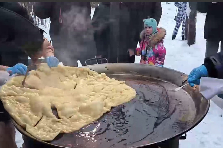 Рекордную по размеру лепешку испекли в этнокомплексе «Нум» в Ноябрьске. Об этом сообщает канал GO YAMAL.