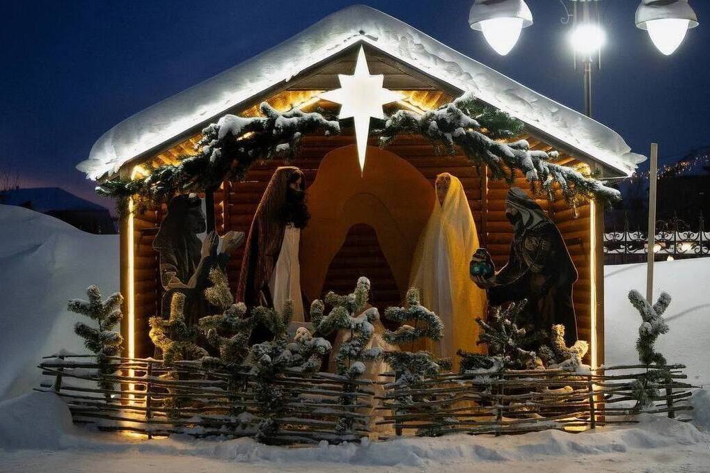 В Ноябрьске возле храма Архистратига Михаила установили четырехметровую снежно-ледяную композицию с подсветкой и фигурами ангелов. В Надыме вертеп в форме снежной пещеры построили на территории Свято-Никольского храма.